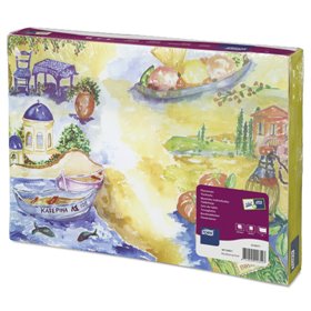 Tork Placemat Aquarelle Advanced 1-layer Decor 42x30cm - A stylish and functional addition to any dining table, featuring a watercolor design. These 1-layered placemats protect your table while adding a pop of color. Measuring 42x30cm, they are perfect for any setting. FSC-certified and available in packs of 500, these placemats are ideal for restaurants looking to impress guests with both style and sustainability. Provide a hygienic and attractive dining experience with the Tork Placemat Aquarelle Advanced.