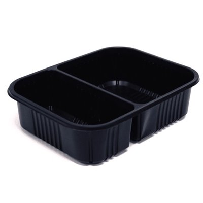 Enterpack Bakken Topseal Tray 2 Vaks Zwart PP 600cc PSW-19155-2A