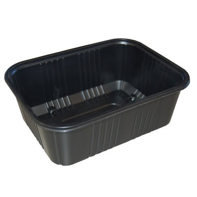 - Mooie mat zwarte maaltijdbak die met warme of koude maaltijden dicht geseald kan worden met een Enterpack folie en sluitmachine