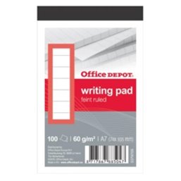 Schrijfblok Gelinieerd A7Dit handige Schrijfblok Gelinieerd A7 is perfect voor onderweg of op kantoor. Met zijn compacte formaat van 74 x 105 mm past het gemakkelijk in je tas of zak. Elk blok bevat 50 pagina's van hoge kwaliteit gelinieerd papier, met een stevige harde kaft voor extra bescherming. Ideaal voor notities, boodschappenlijstjes of vergaderingen. Een must-have voor studenten, professionals en iedereen die snel notities wil maken. Blijf georganiseerd en voorbereid met dit handige schrijfblok!