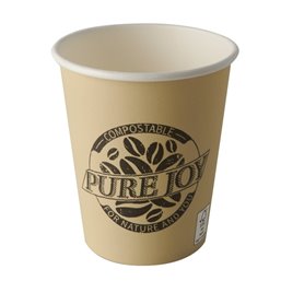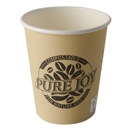 Koffiebekers 200ml "Pure" Crême Karton "Pure Joy" Ø 80 x 92mmDeze milieuvriendelijke koffiebekers zijn gemaakt van hoogwaardig karton met een biologisch afbreekbare mais coating aan de binnenzijde. Perfect voor warme en koude dranken op kantoor of bij evenementen. FSC gecertificeerd voor duurzaam bosbeheer. Met een inhoud van 200ml zijn ze ideaal voor koffie en thee. Praktisch, stijlvol en comfortabel in gebruik. Een verantwoorde keuze voor bedrijven die waarde hechten aan duurzaamheid en kwaliteit.