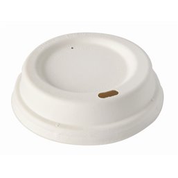 Dome Deksels van Suikerriet "Pure" Ø 80mm Wit Deze duurzame deksels zijn gemaakt van bagasse, een restproduct van suikerrietproductie. Met een biologisch afbreekbare coating aan de binnenkant en veilig voor de magnetron, zijn ze ideaal voor warme dranken. Voldoen aan composteerbaarheidsnormen en hebben een modern ontwerp met extra ruimte voor schuimende dranken. Kies voor milieuvriendelijke en praktische verpakkingsoplossingen met de Dome Deksels van Suikerriet "Pure" Ø 80mm Wit.