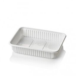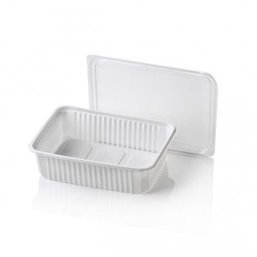 Kilobakken 1500cc 180 Serie Rechthoek PP WitDeze rechthoekige kilobakken uit de 180 serie, met een inhoud van 1500cc, zijn vervaardigd uit voedselveilig polypropyleen. Ze zijn wit van kleur en hebben de afmetingen 180 x 130 x 90mm. Ze zijn perfect voor het bewaren en verkopen van grotere porties in slagerijen en viswinkels. Bovendien zijn ze geschikt voor gebruik in de vriezer en magnetron, ideaal voor het opwarmen van soepen en vlees- of visgerechten. Let wel, verwijder de deksels bij het opwarmen in de magnetron.