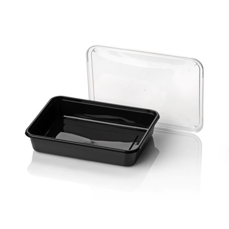 Magnetron- Maaltijdbakken Herbruikbaar 500cc 182 Serie Rechthoek PP Zwart 183 x 135 x 35mm