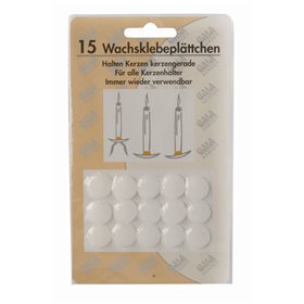 Kandelaarplakkers van Was Ø 15mm Kandelaarplakkers van was in wit, met een diameter van Ø 15mm. Perfect voor het stevig vastzetten van kaarsen op elk oppervlak. Eenvoudig in gebruik en bieden een hygiënische oplossing. Voorkom wiebelende kaarsen en geniet van een veilige en sfeervolle verlichting. Ideaal voor elk huishouden of evenement. Met deze kandelaarplakkers hoef je je geen zorgen te maken over omvallende kaarsen of geknoei met kaarsvet. Een praktische toevoeging aan je kaarsenassortiment voor een zorgeloze brandervaring.