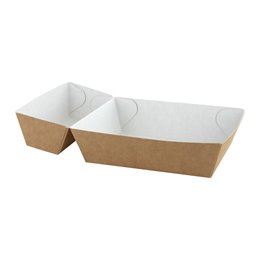Snackbakjes A7 Bruin Wit Karton 90 x 70 x 35mm - Plastic Vrij en Vrijgesteld van SUP Wetgeving Ontdek de duurzaamheid en functionaliteit van deze snackbakjes. Gemaakt van 235 grams virgin karton, zijn ze natuurlijk vet-werend en hebben geen extra coating nodig. Ze zijn volledig plasticvrij en vallen buiten de SUP wetgeving, wat extra kosten bespaart. Met hun formaat van 90 x 70 x 35mm zijn ze ideaal voor het serveren van diverse snacks. De bruin witte kleur geeft een authentieke uitstraling. Een milieuvriendelijke en economisch voordelige keuze voor bedrijven die snacks willen serveren.