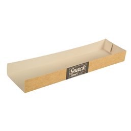 Panin inschuif Snackbakje Karton "Good Food" 285 x 75 x 30mm Dit milieuvriendelijke, voedselveilige en composteerbare snackbakje is een stijlvolle en functionele keuze voor jouw bedrijf. Gemaakt van 100% nieuwe houtvezels uit duurzame bosbouw, met FSC- en TÜV-certificering. Het design bevat een chique zwarte band met leuke teksten. Met een afmeting van 285 x 75 x 30mm, is het perfect voor diverse snacks. Let op: niet geschikt voor magnetron of vriezer en bedoeld voor eenmalig gebruik.