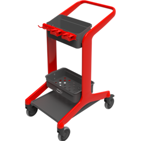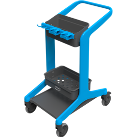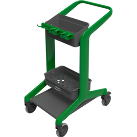 Dit mobiele station kan worden aangepast aan veranderende behoeften, dankzij modulaire gereedschapsbeugels die de mogelijkheid bieden om tussen vijf en twaalf gereedschappen te monteren. Met stevige lades die respectievelijk 12 en 20 kg kunnen dragen, is het perfect voor het opbergen van diverse schoonmaakbenodigdheden.