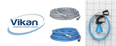 Vikan Hygiene 93353 Heetwater SlangensetDeze hoogwaardige slangenset is speciaal ontworpen voor professioneel gebruik met heet water. Met een lengte van 10 meter en een maximale werkdruk van 20 Bar is deze set ideaal voor reinigingstaken tot 70°C. De blauwe kleur en FDA-goedkeuring maken het veilig en gemakkelijk te identificeren voor gebruik in de voedingsindustrie. Duurzaam en slijtvast, perfect voor langdurig gebruik in veeleisende omgevingen. Kies voor de Vikan Hygiene 93353 Heetwater Slangenset voor veilig en efficiënt reinigen.