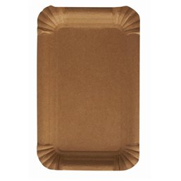 Borden van Karton "Pure" Rechthoek 180 x 260mm BruinDeze kartonnen borden zijn gemaakt van virgin fibre uit duurzame bosbouw, wat bijdraagt aan het behoud van onze bossen. Ze zijn voedselveilig, FSC- en TÜV gecertificeerd en na gebruik composteerbaar. Met hun aantrekkelijke bruine kleur en rechthoekige vorm van 180 x 260mm zijn ze stevig genoeg voor een breed scala aan gerechten. Verpakt in handige stapels, zijn ze gemakkelijk op te bergen en te vervoeren. Een verantwoorde keuze voor bedrijven die waarde hechten aan duurzaamheid en praktisch gebruik.